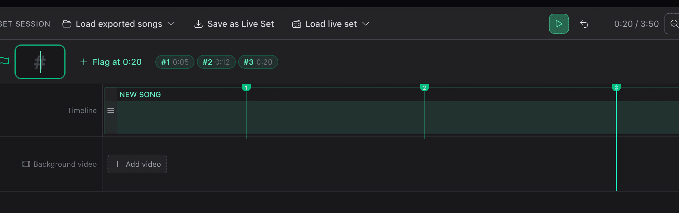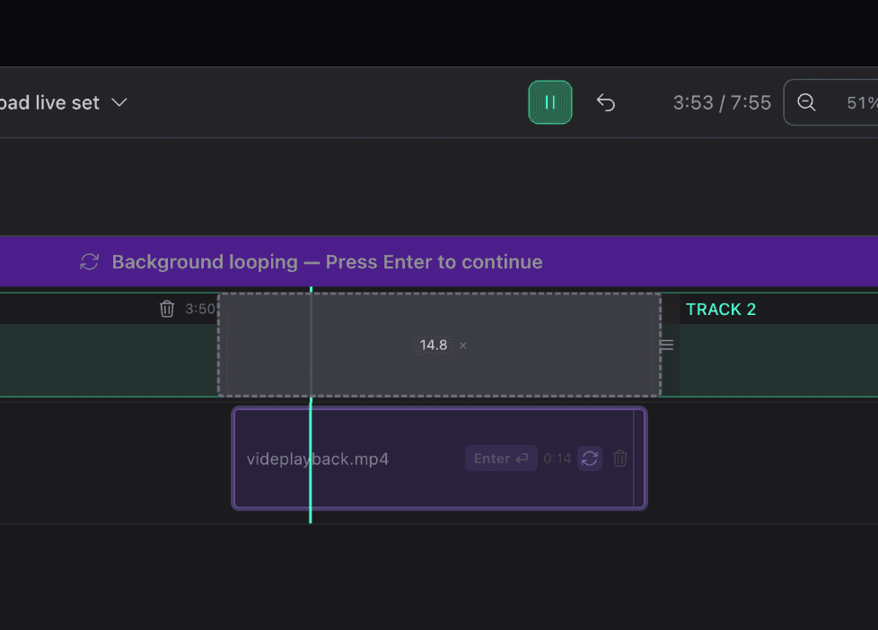 Built for bands, DJs, and live performers. One timeline — your whole set.